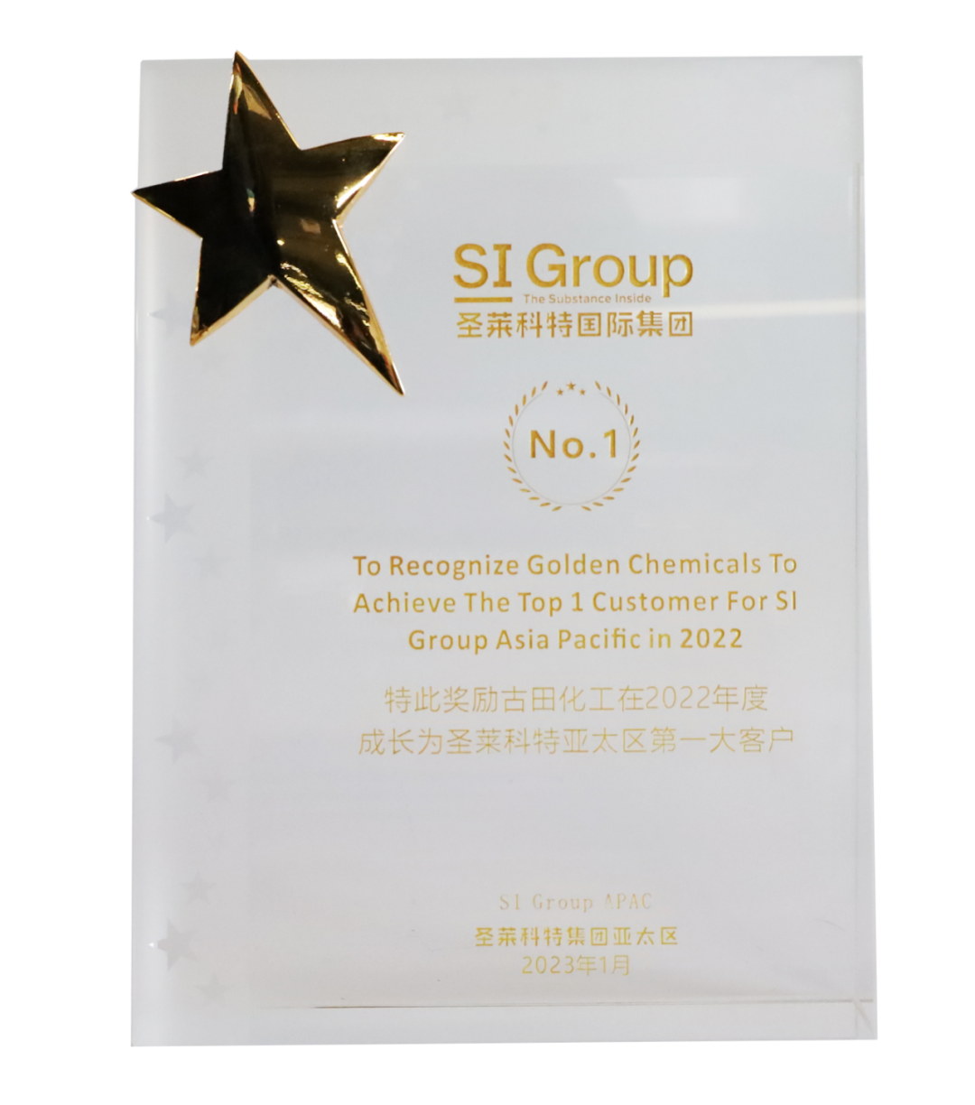 此次交流活動(dòng)中,雙方進(jìn)行了親切友好的會(huì )談,為后續進(jìn)一步加強合作奠定了良好的基礎。呂軍總經(jīng)理對古田化工代理圣萊科特集團旗下產(chǎn)品所取得的成績(jì)表示高度認可,并為古田化工頒發(fā)了2022年度圣萊科特“亞太區第一大客戶(hù)”的榮譽(yù)稱(chēng)號,以表彰古田化工在圣萊科特抗氧劑、壬基酚、辛基酚、酚醛樹(shù)脂等業(yè)務(wù)拓展中做出的巨大貢獻。該獎項也表明古田已成為圣萊科特在亞太區最重要的合作伙伴之一。